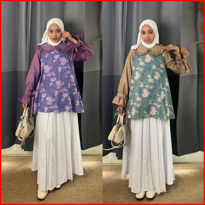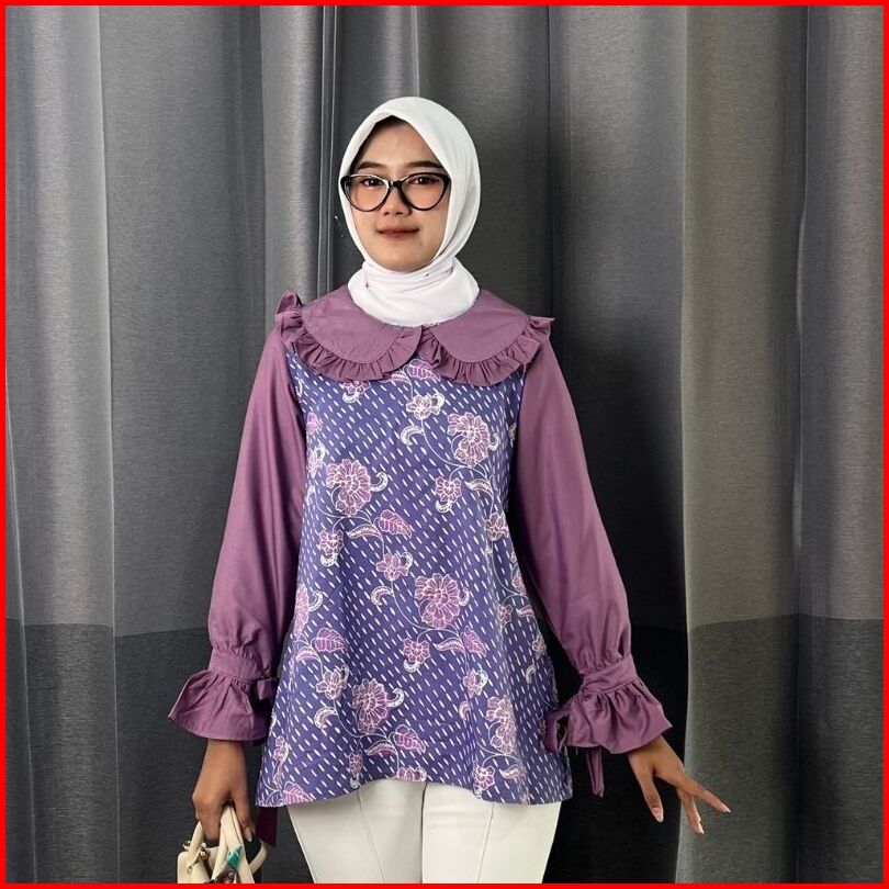 Rasaraya Batik Hanna Rintik Blouse Wanita Katun Cap - Atasan Batik Kantor Kerja Warna Kombinasi