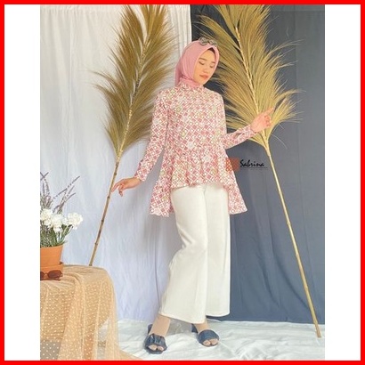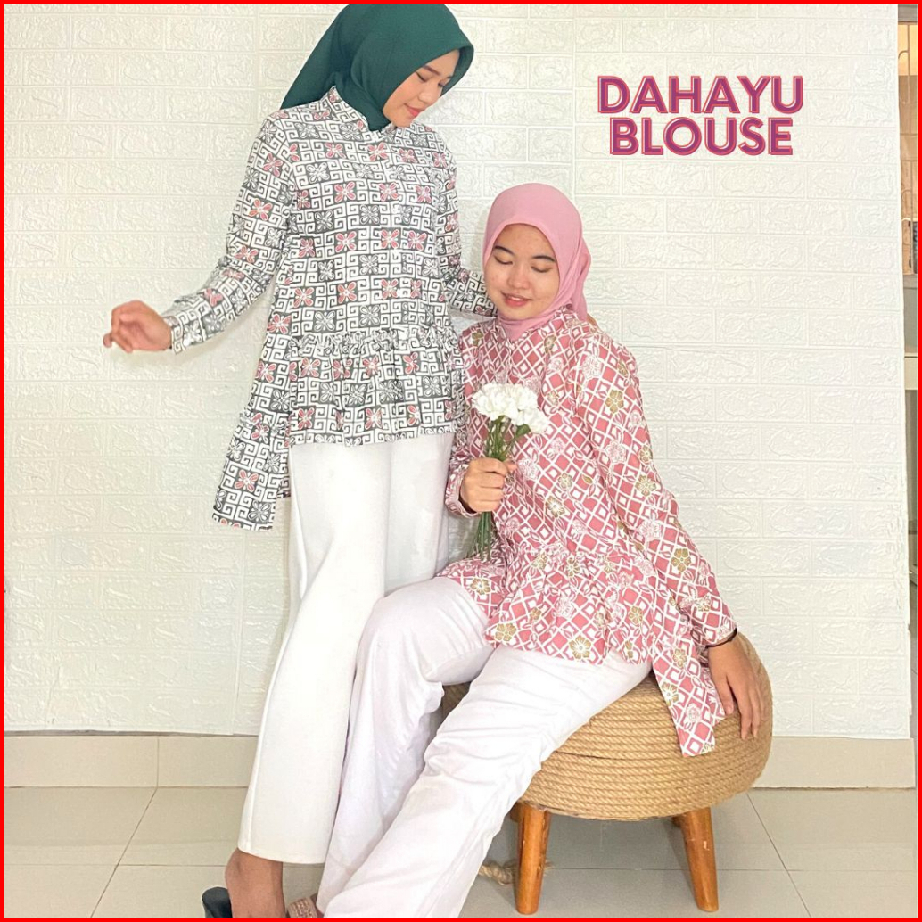 Dahayu Blouse Atasan Kemeja Batik Kerja Kantor Wanita Print Katun Soft Pastel Busui Modis Modern Kekinian