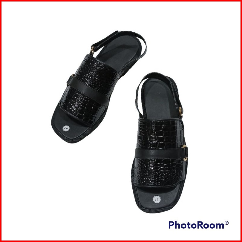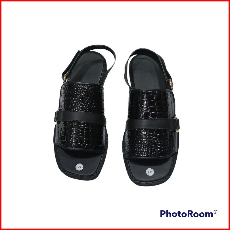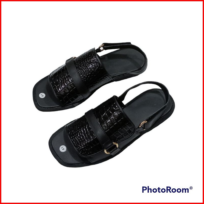 Sb Sandal Flat Tali Kokop Croco Hitam