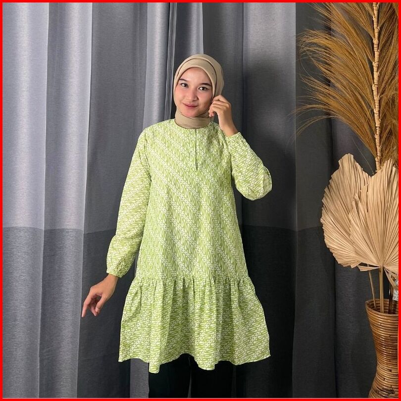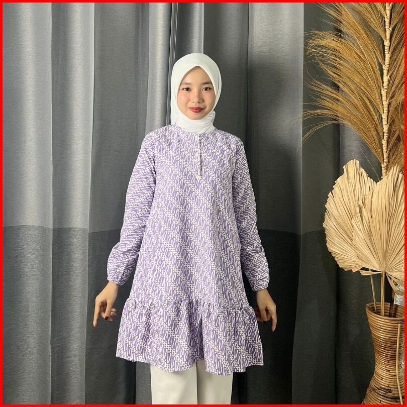 Rasaraya Batik Karlin Tunik Wanita Katun - Atasan Batik Motif Parang Lilac Dan Hijau Pastel