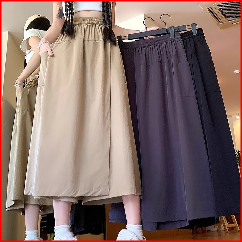S 5xl Rok Mid-length Wanita Celana Rok Pakaian Kerja Kasual Gaya Korea Celana Rok Lebar Wanita High Waist Panjang A-line