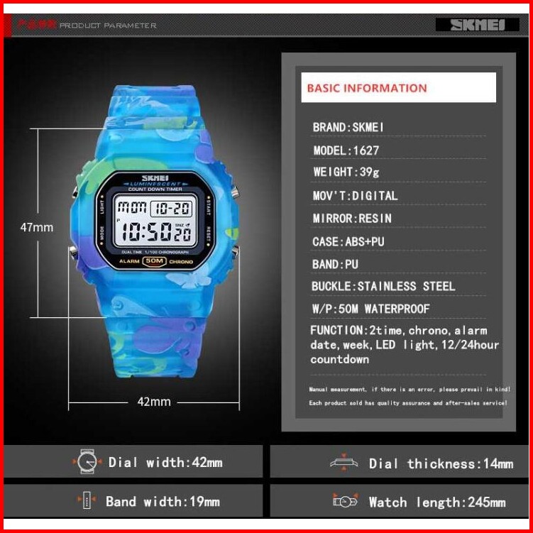 Skmei 1627 Original Jam Tangan Digital Wanita Strap Rubber Karet Jam Tangan Tahan Air