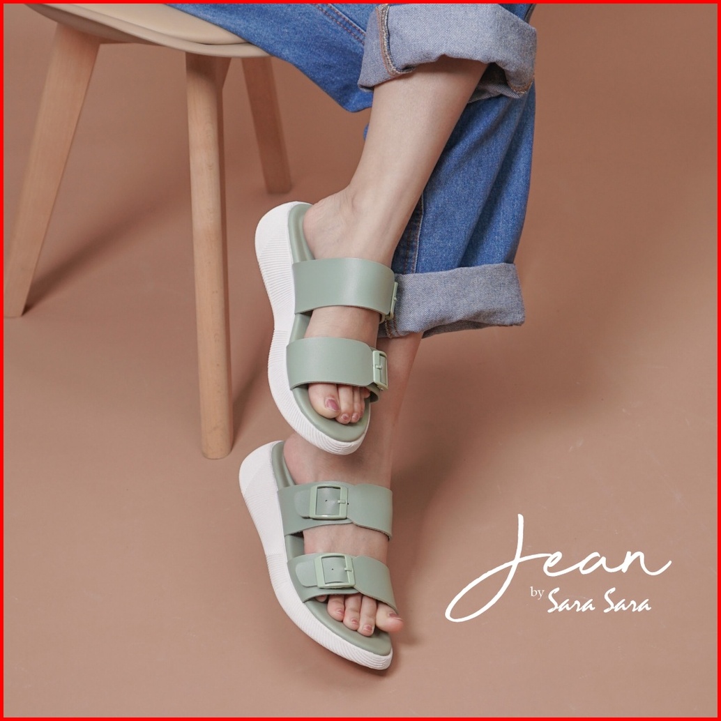 Sarasara Jean Size 36-40 Sandal Selop Casual Wanita Sendal Slop Cewek Dua Ban Sandal Platform Wanita