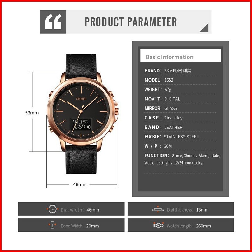 Skmei 1652 Original Jam Tangan Dual Time Leather Kulit Jam Tangan Tahan Air
