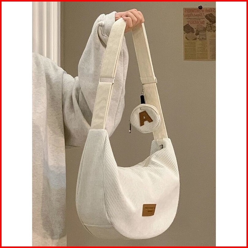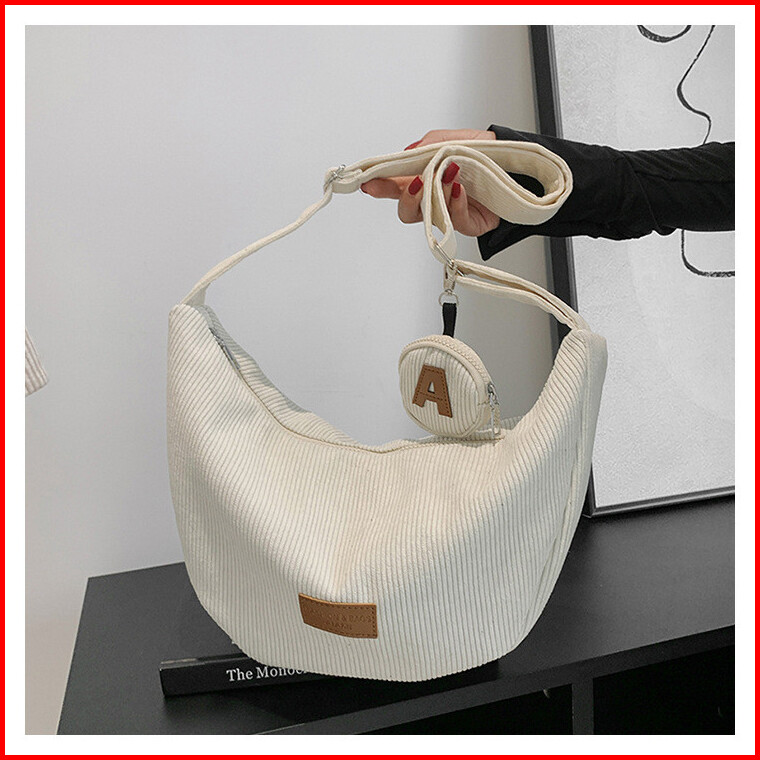 Corduroy Sling Bag Tas Selempang Bahu Wanita Kuliah Slingbag Kapasitas Besar 2in1 Nylon Wanita Tas