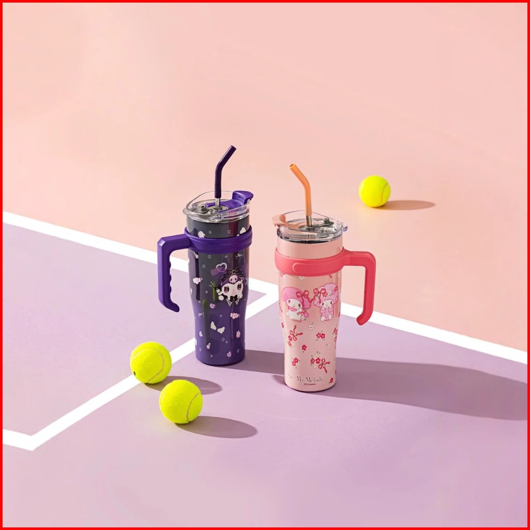 Botol Minum Stainless Steel 1200ml 40oz Botol Termos Karakter Sanrio Gagang Sedotan Stainless Steel