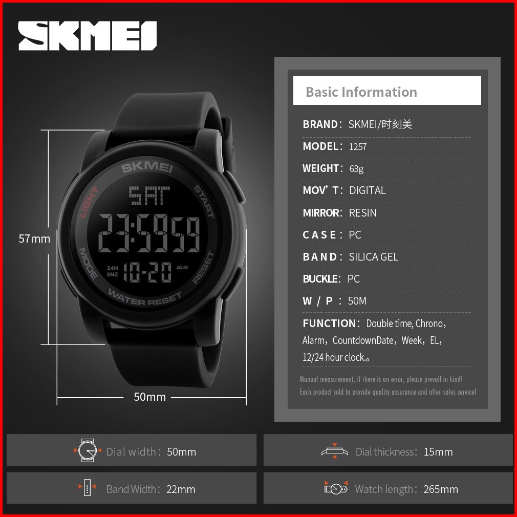 Skmei 1257 Original Jam Tangan Digital Pria Rubber Tahan Air