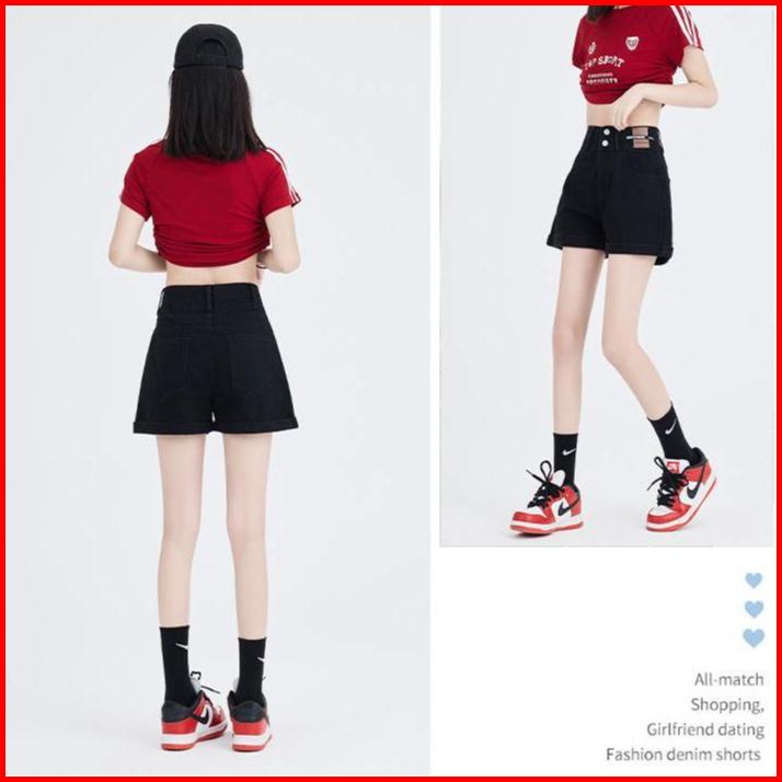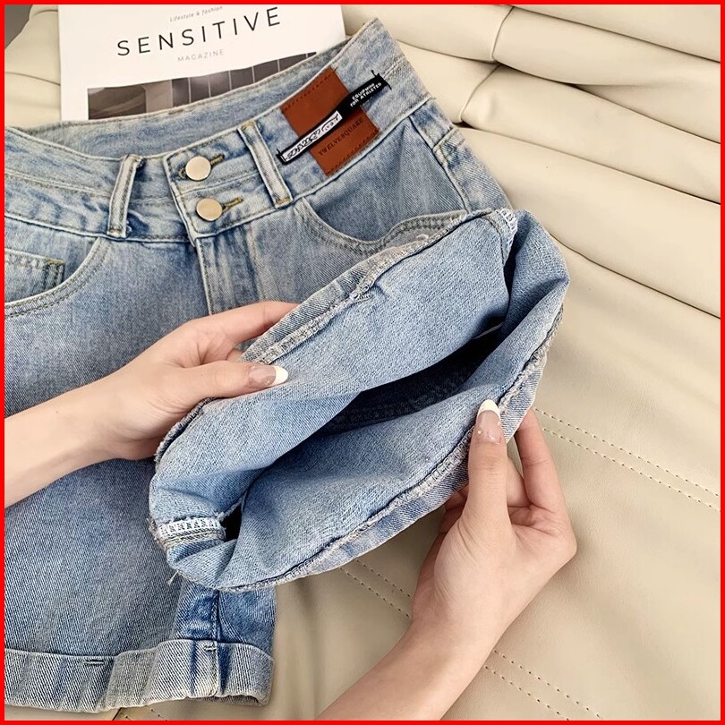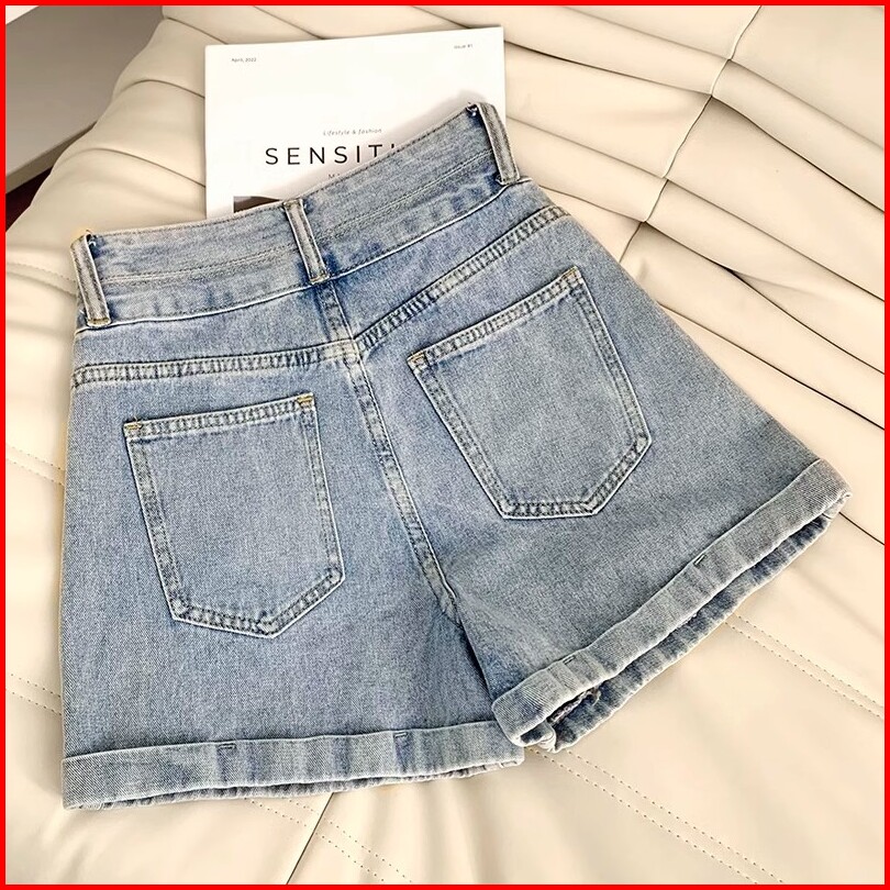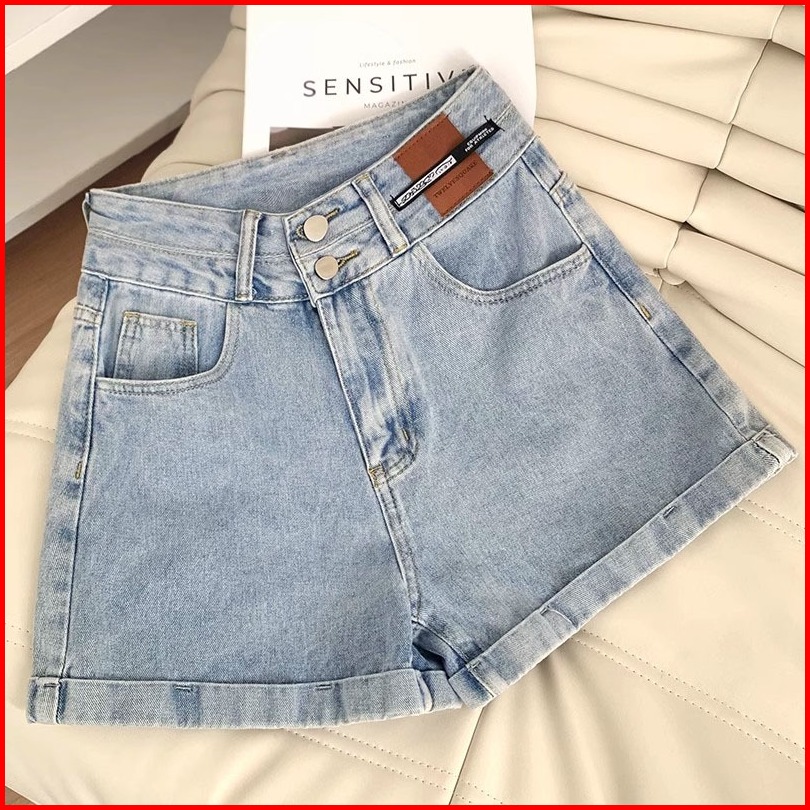 Keygirl Celana Pendek Denim Wanita Pinggang Tinggi Yang Rusak Short Pants Kancing Kasual Musim Panas Jumbo