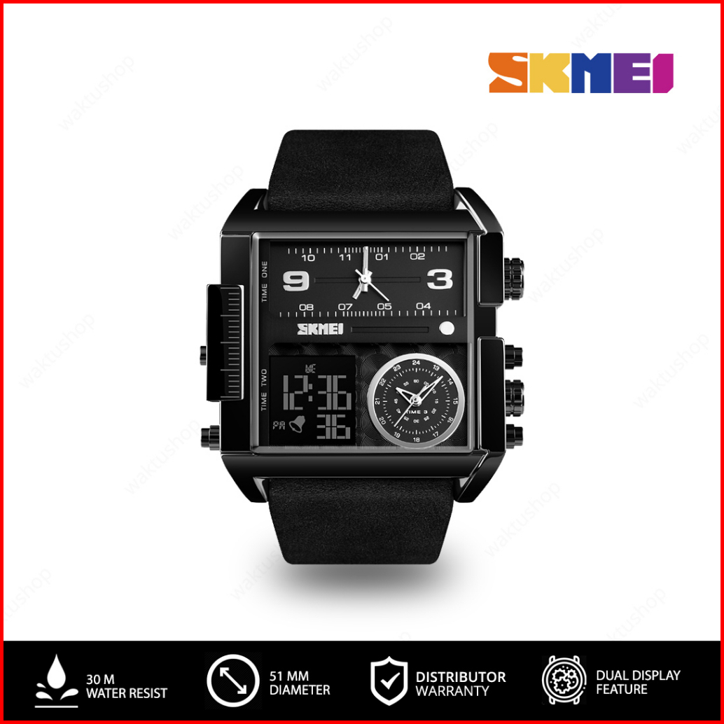 Skmei 1391 Original Jam Tangan Pria Dual Time Jam Tangan Kulit Leather Tahan Air