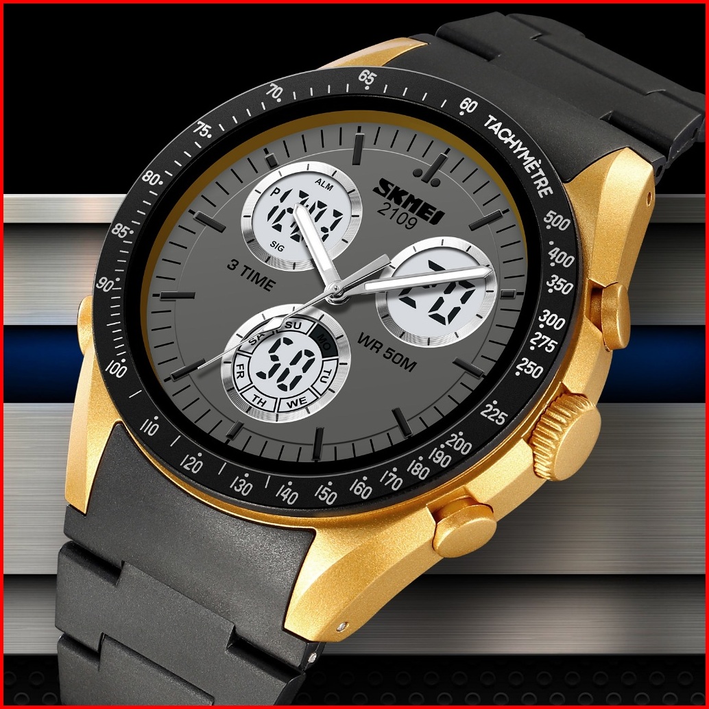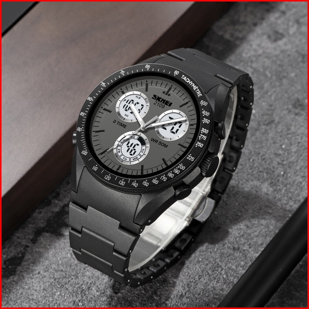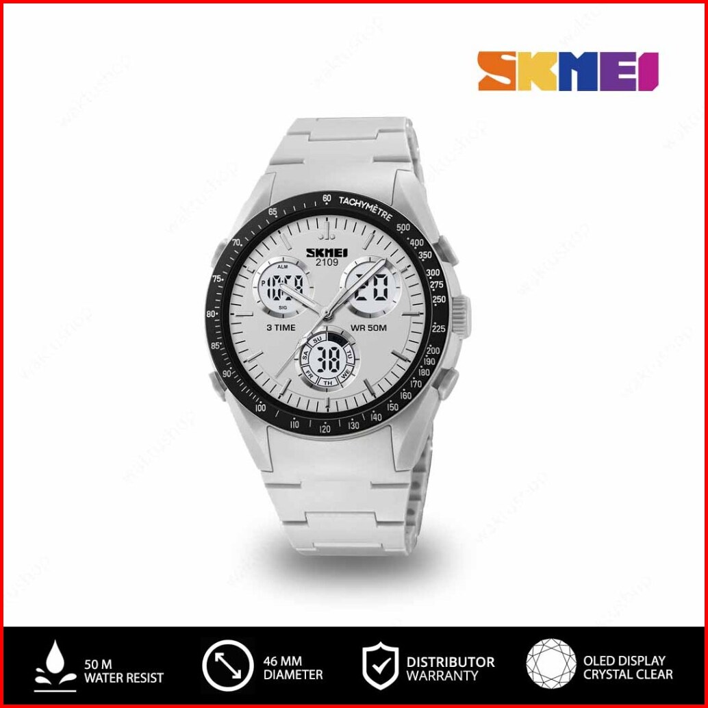Skmei 2109 Original Jam Tangan Dual Time Pria Strap Rubber Karet Jam Tangan Tahan Air