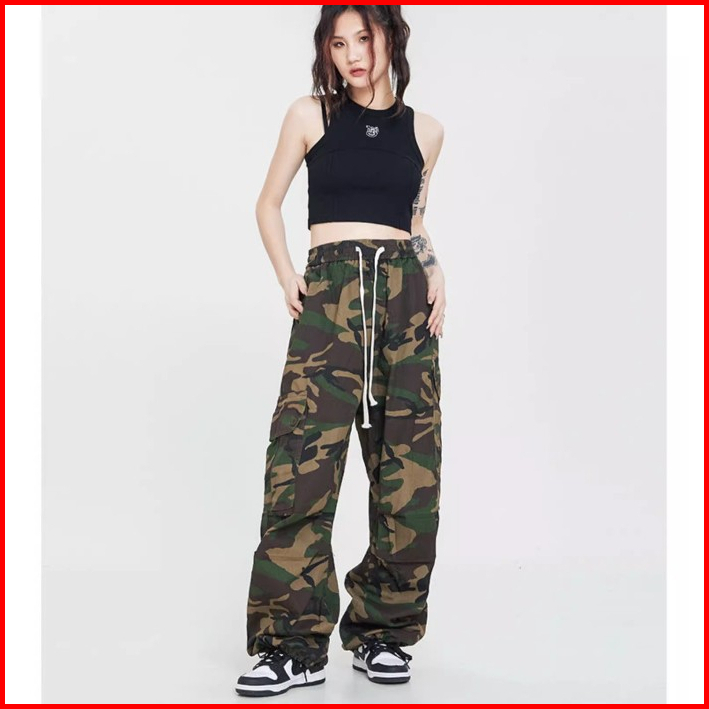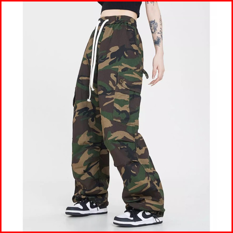 Keygirl Celana Army Wanita Span Karet Cargo Pants Wanita Highwaist Baggy Pants Second Kulot Loose Pants Fashion