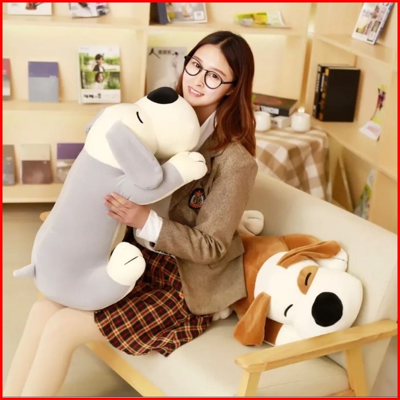 Boneka Anjing Rebah Doggy Lying Lucu Ukuran 40cm Bahan Halus Lembut Sni