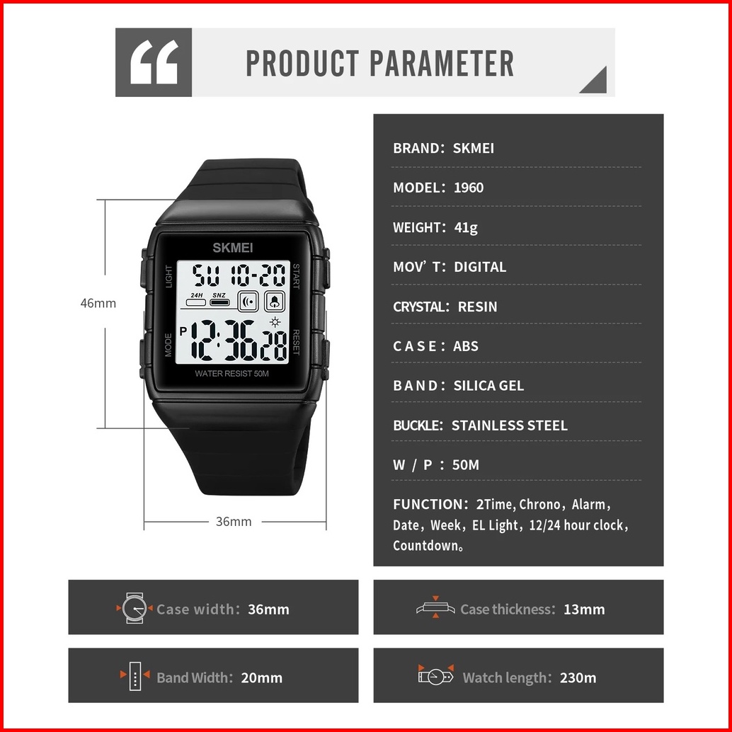 Skmei 1960 Original Jam Tangan Digital Silikon Jam Tangan Tahan Air