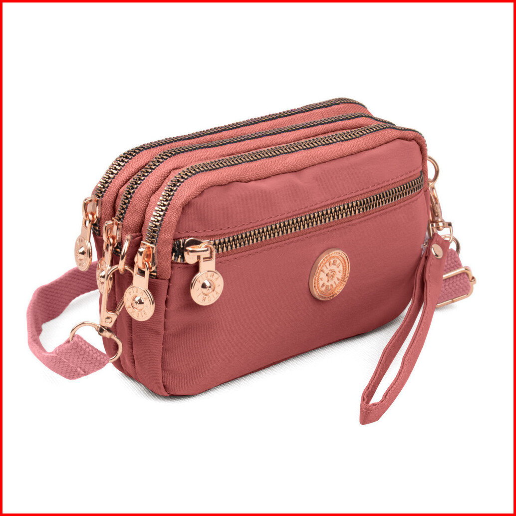 Deobags Glosir Dompet Wanita Dompet Selempang Dompet Hp 4 Res Dompet Nylon Pioma Eveline Rose