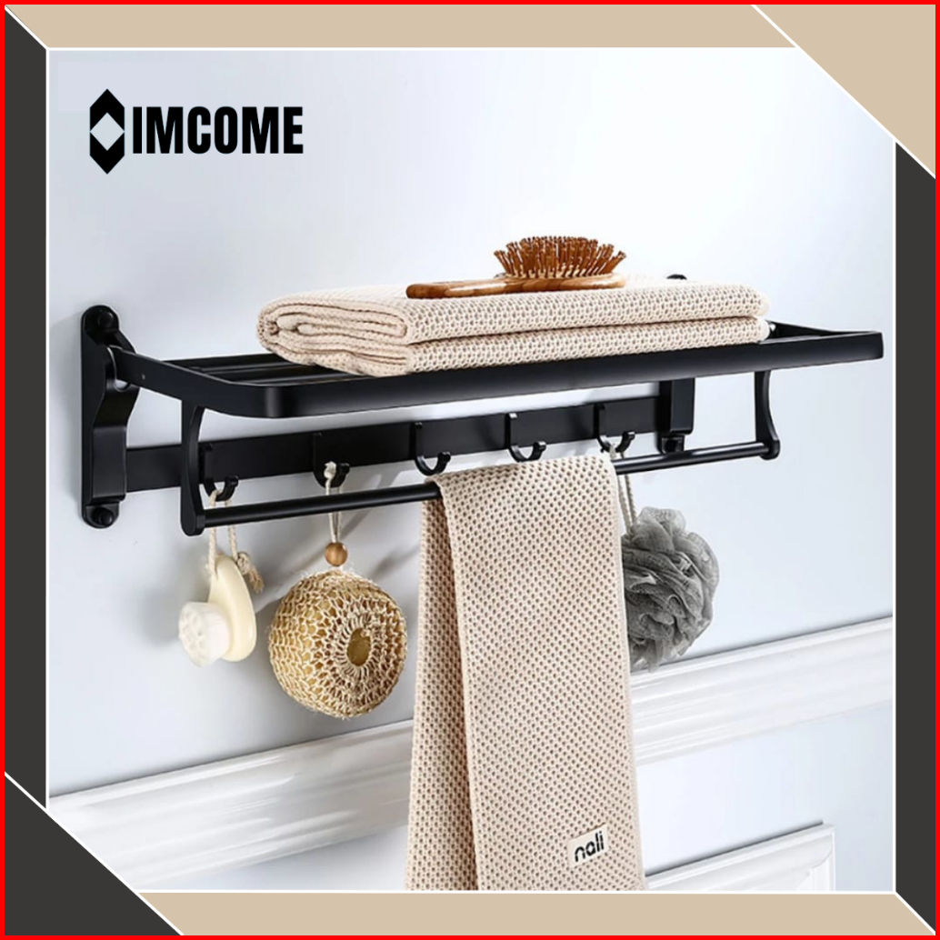 Imcome Rak Dinding Gantungan Handuk Kamar Mandi 2 Susun Serbaguna Tempat Penyimpanan Handuk Kamar Mandi Stainless Steel