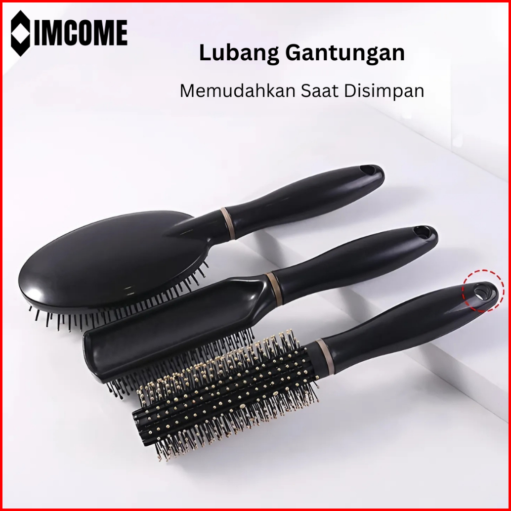 Imcome Sisir Rambu Anti Kusut Set Wanita Hair Brush Statis Alat Perawatan Rambut Dan Pijat Kepala Hitam