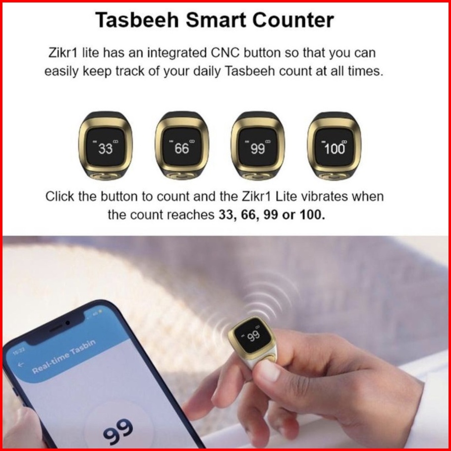 Iqibla Zikr Ring Lite - Cincin Tasbih Pintar Polyester Cincin Tasbih Digital Iqibla Zikr Ring Lite Iqibla Zikr1 Ring Lit
