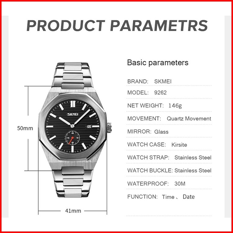 Skmei 9262 Original Jam Tangan Pria Analog Stainless Steel Jam Tangan Tahan Air