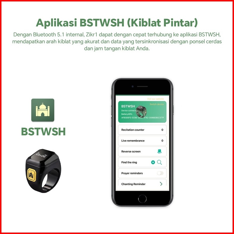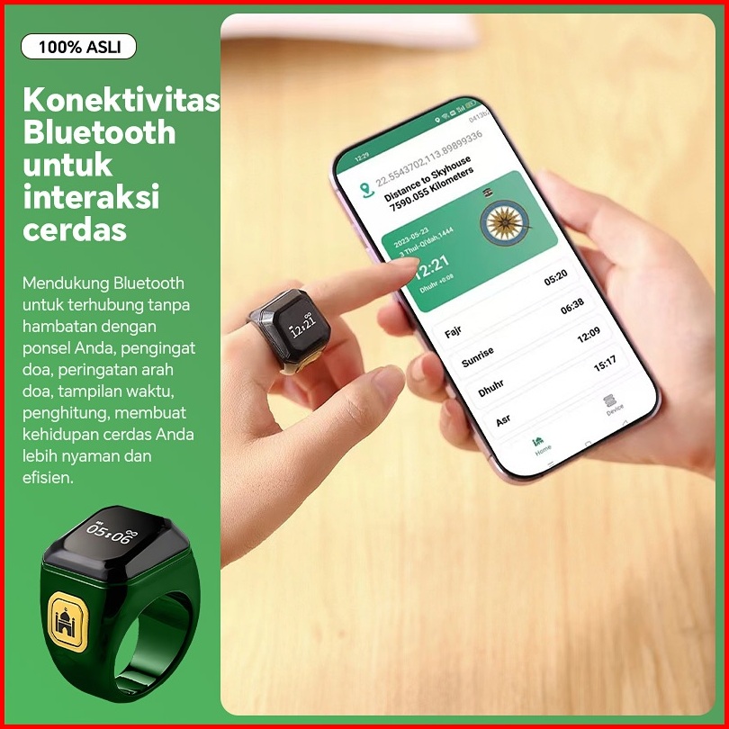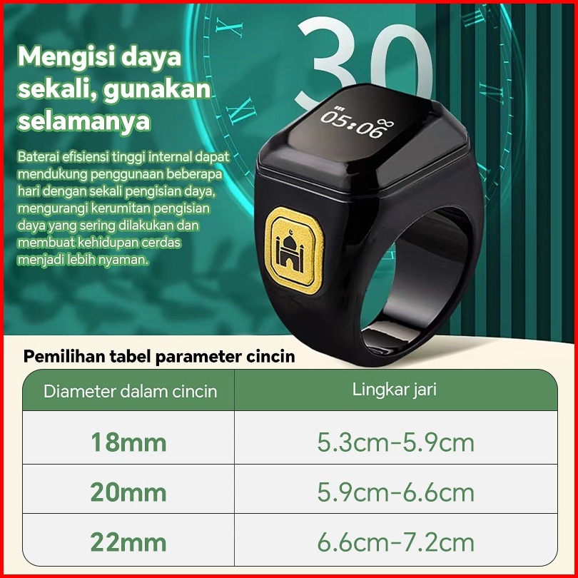 Cincin Tasbih Digital Smart Zikr Ring Led Display Bluetooth Tasbeeh Counter Pengingat Waktu Sholat Tahan Air