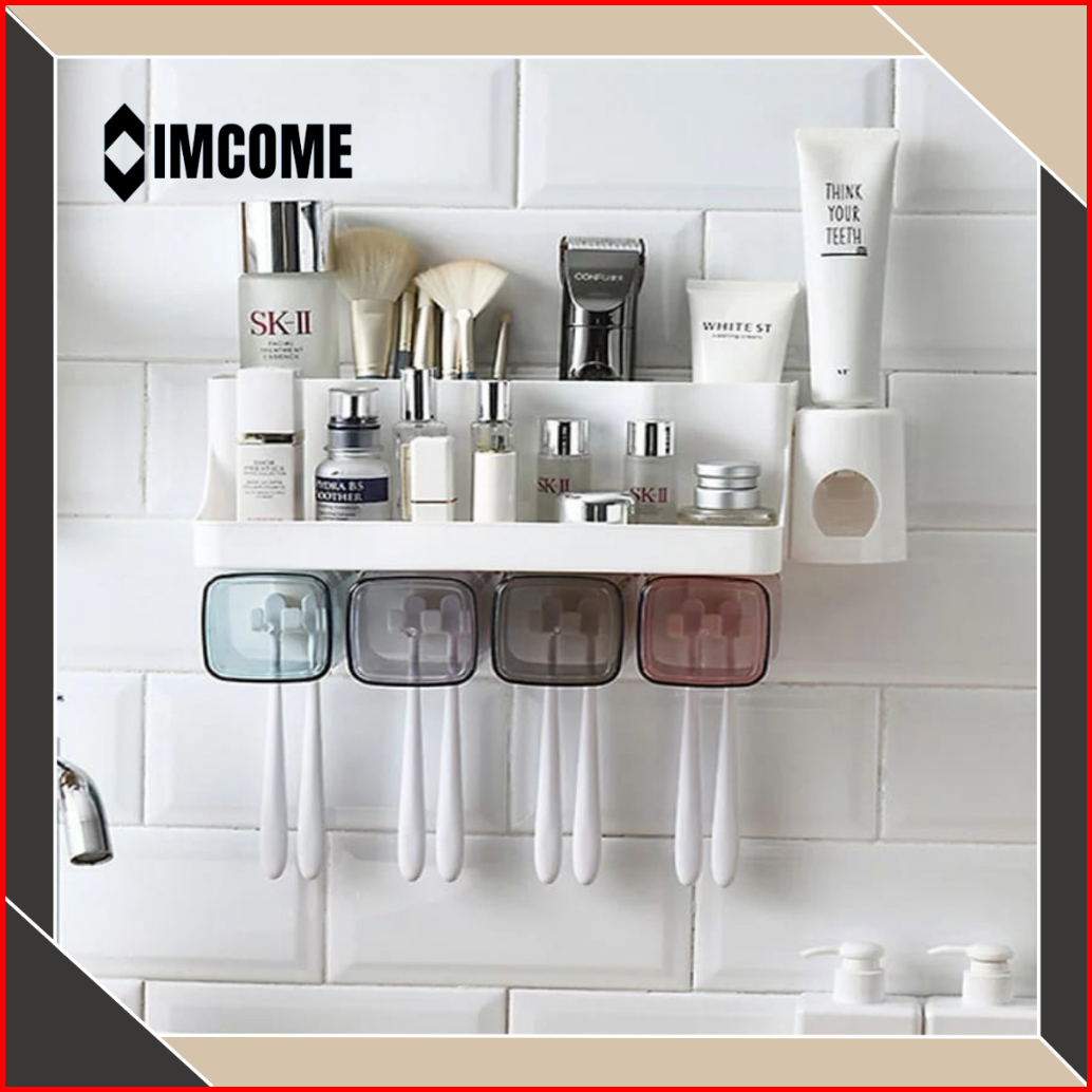 Imcome Rak Sikat Gigi Organizer Tempat Penyimpanan Perlengkapan Dan Peralatan Kamar Mandi Sikat Gigi Dispenser Odol Past