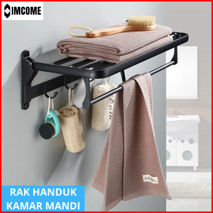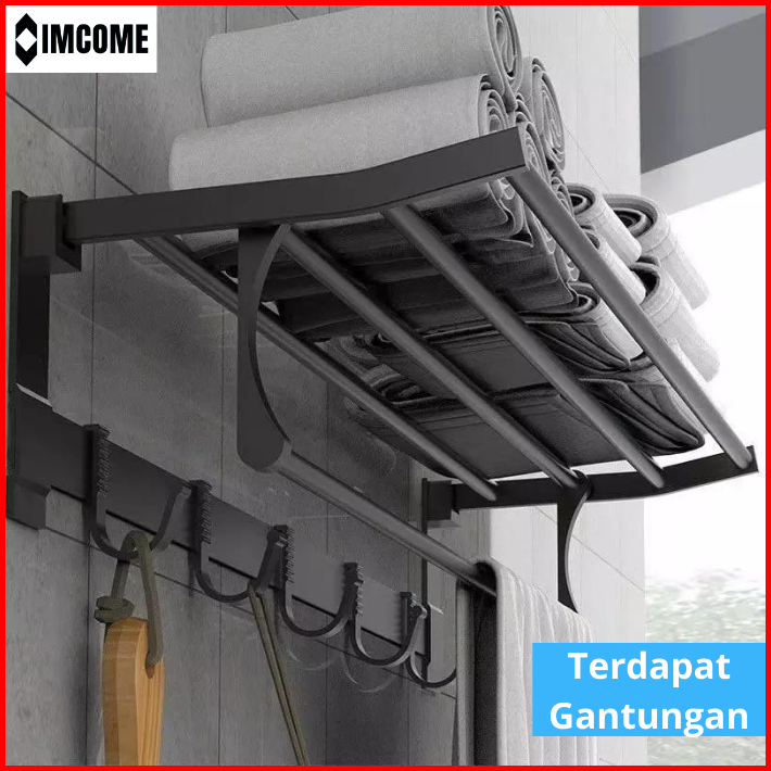 Imcome Rak Dinding Gantungan Handuk Kamar Mandi 2 Susun Serbaguna Tempat Penyimpanan Handuk Kamar Mandi Stainless Steel