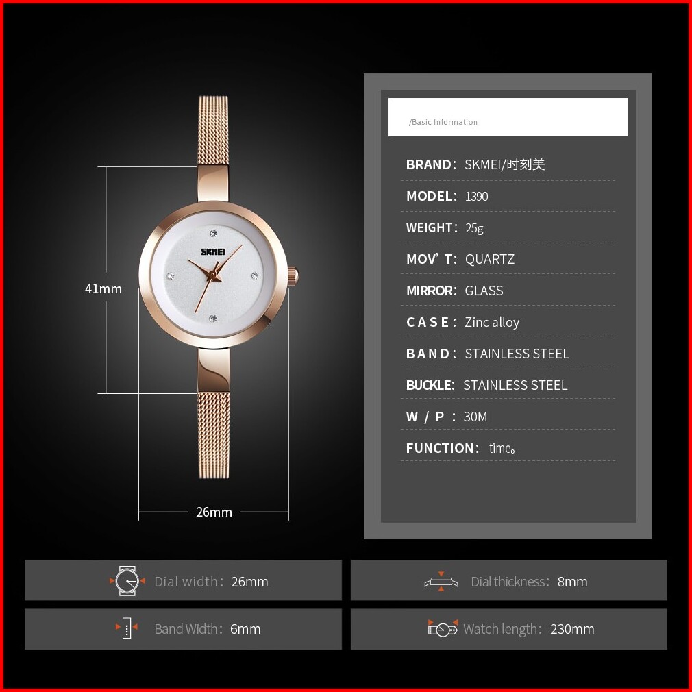 Skmei 1390 Original Jam Tangan Wanita Analog Stainless Steel Fashion