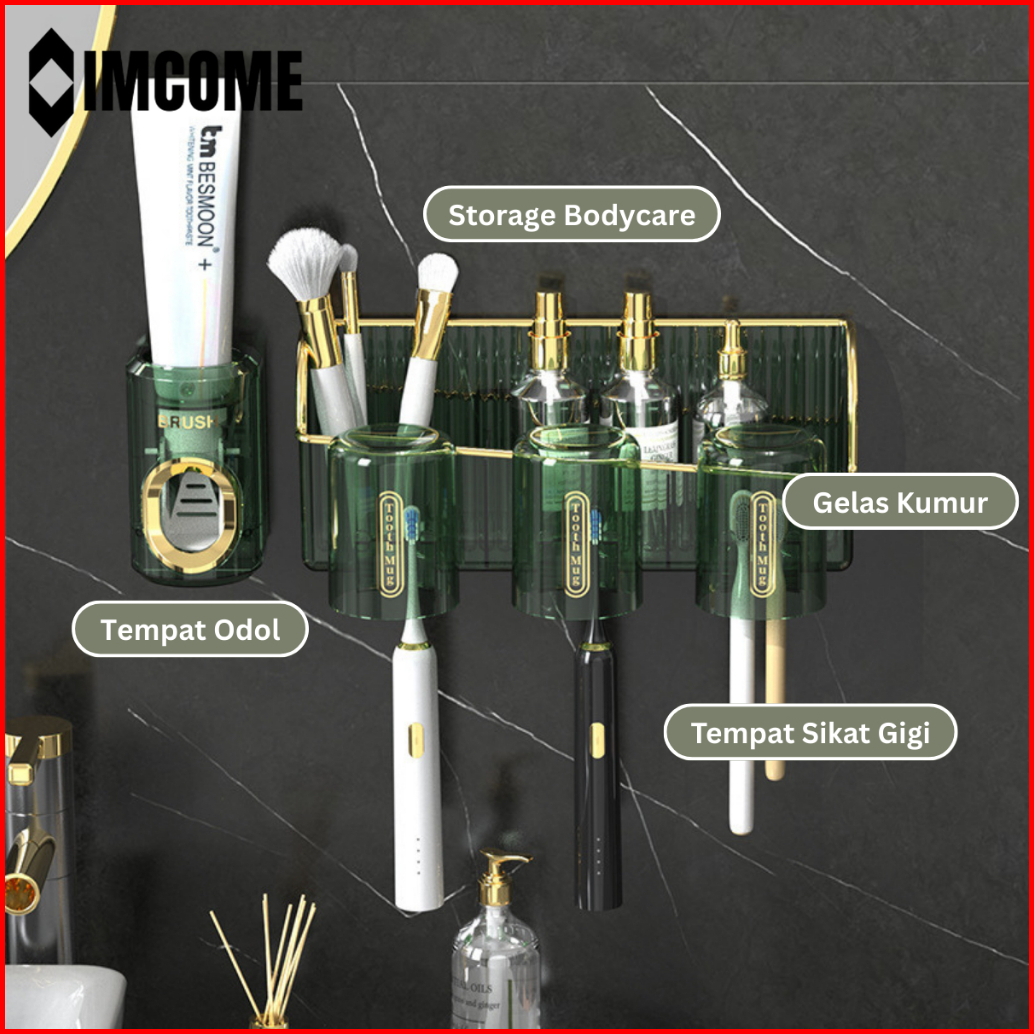 Imcome Rak Kamar Mandi Tempel Dispenser Sikat Gigi Odol Tooth Brush Organizer Tempat Penyimpanan Alat Kamar Mandi Sikat