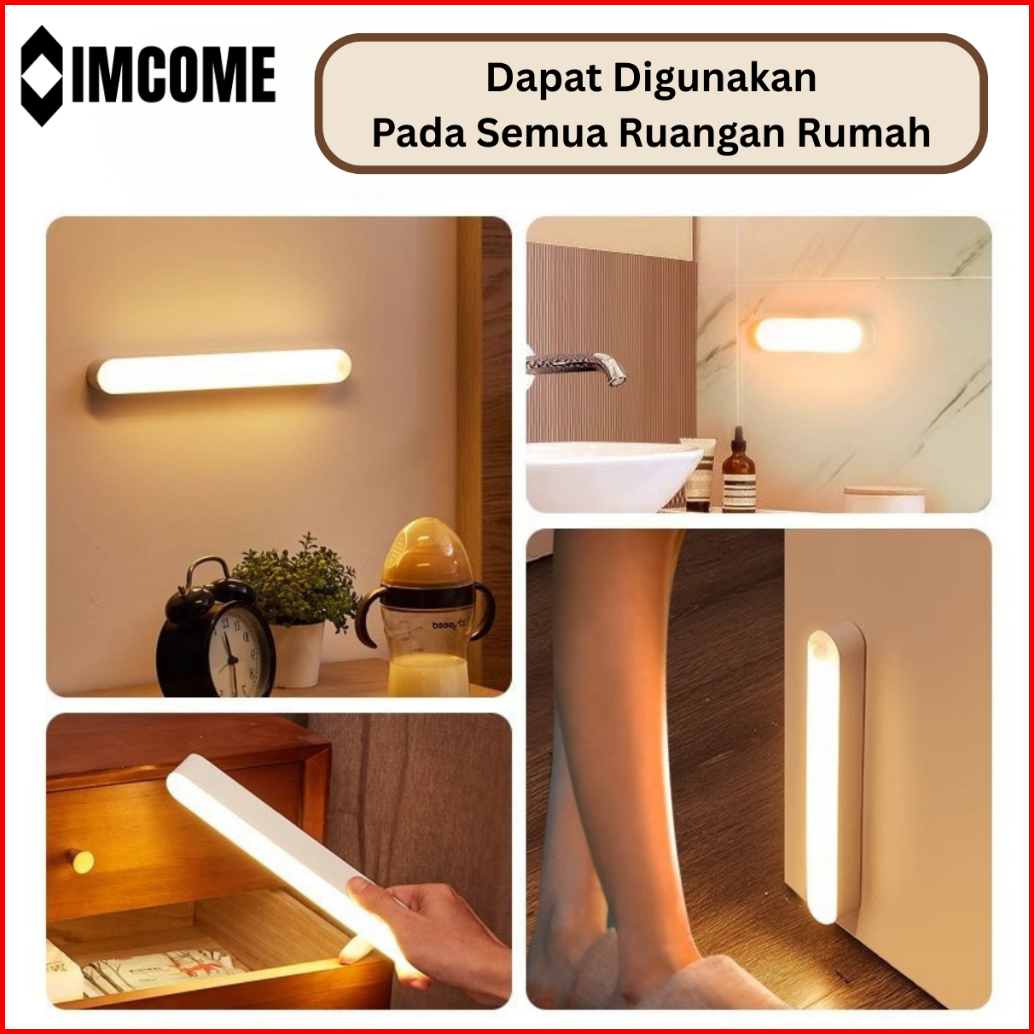 Imcome Lampu Tidur Led Tombol Multifungsi Temepel 3 Warna Lampu Belajar Lampu Lemari Lampu Darurat Portable Rechargeable