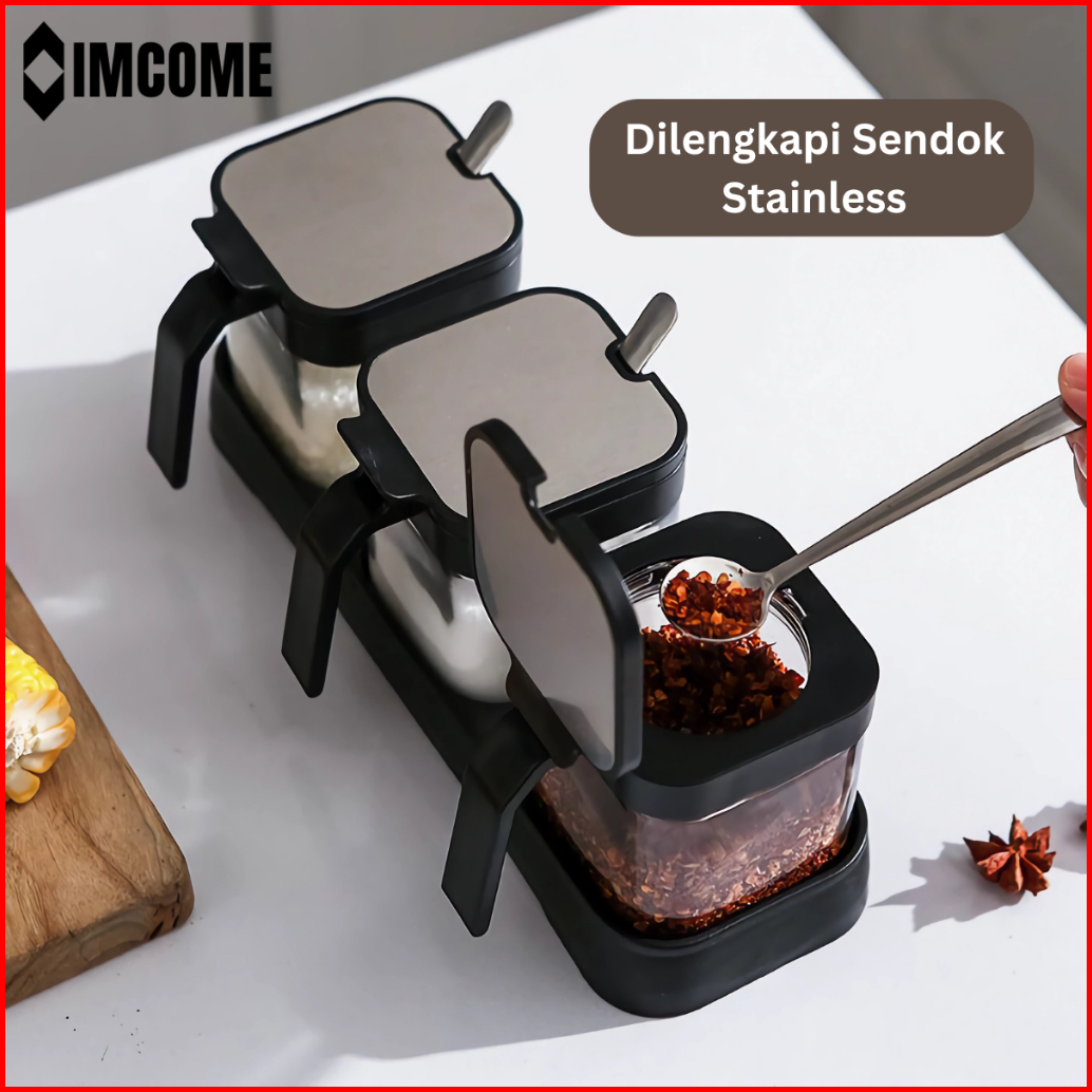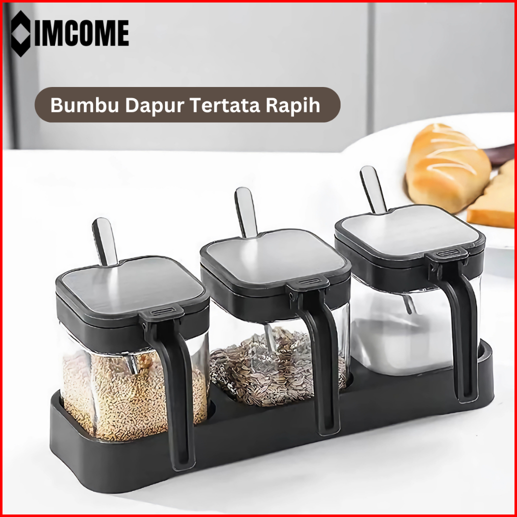 Imcome Kotak Bumbu Dapur Kaca Tempat Penyimpanan Bumbu Dapur Wadah Bumbu Garam Lada Gula Minimalis Serbaguna