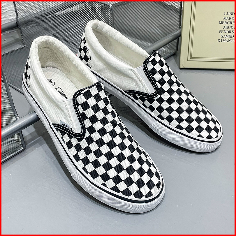 Setu Elise Free Kotak Sepatu Motif Catur Wanita Casual Slip On Import Shoes 077