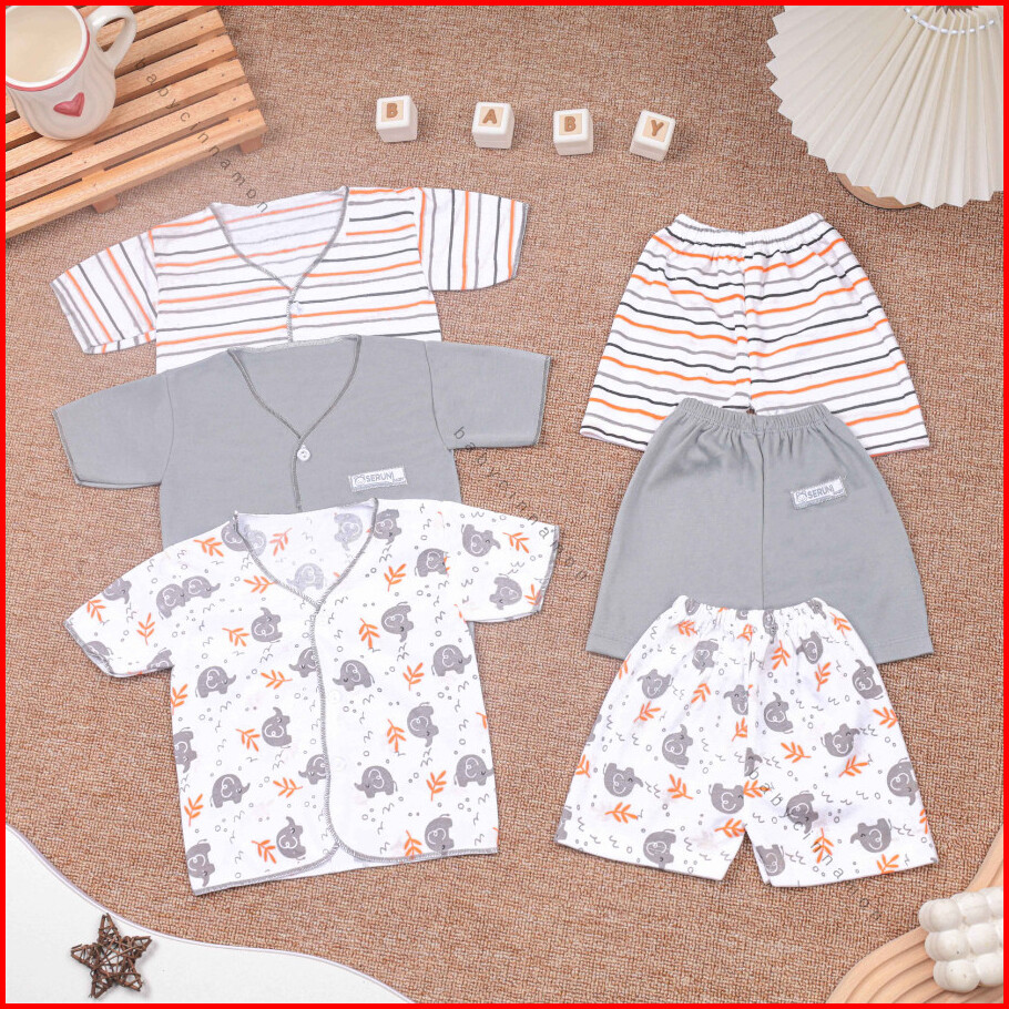 Isi 6 Pcs - Baju Bayi Premium Uk 0-3 Bulan Setelan Baby Anak Laki Laki Perempuan Set Baju Kancing Kado Lahiran Dodora Pe