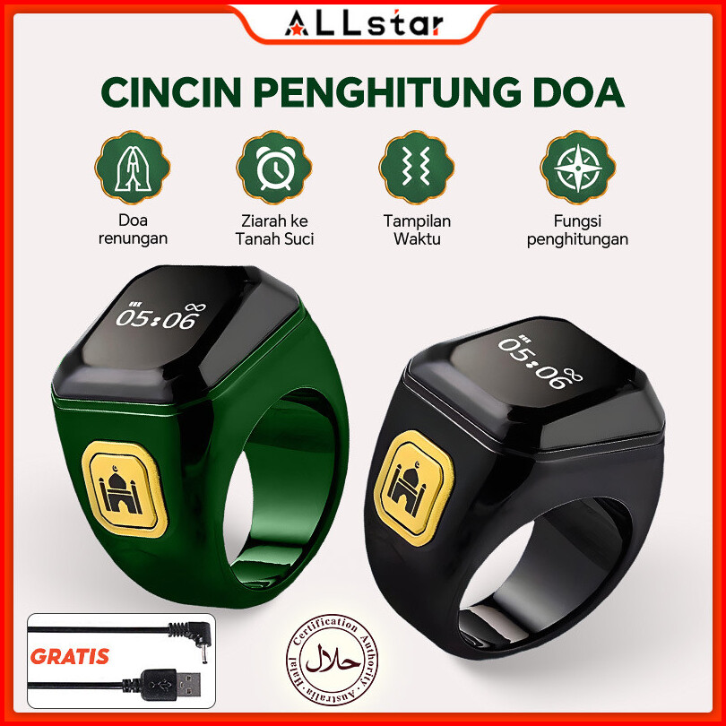 Cincin Tasbih Digital Mini Led Alat Hitung Dzikir Perlengkapan Ibadah Smart Tally Counter Penghitung Zikir Tasbeh Jari D