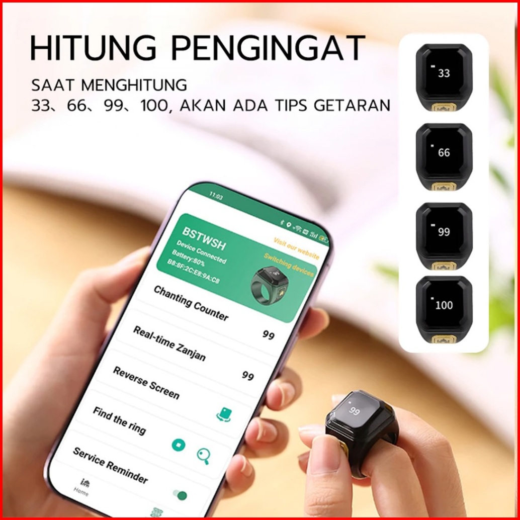 Udblue Smart Ring Tasbih Digital Counter Zikr Dzikir Ring Cincin Penghitung Dzikir Display Bluetooth Rc18