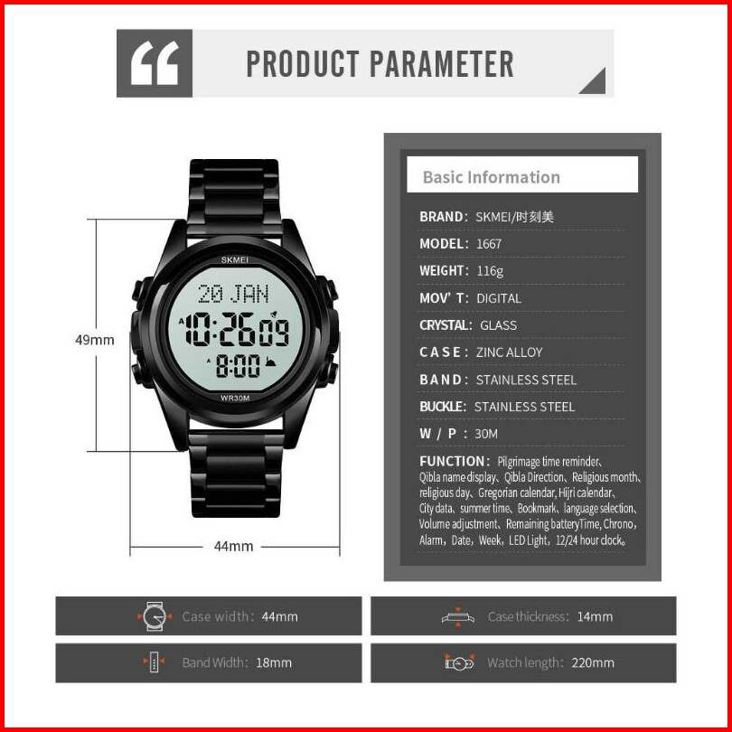 Skmei 1667 Original Jam Tangan Pria Digital Stainless Steel Jam Tangan Tahan Air