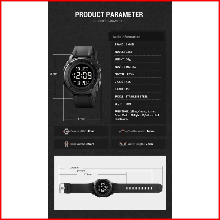Skmei 1853 Original Jam Tangan Digital Rubber Karet Jam Tangan Tahan Air