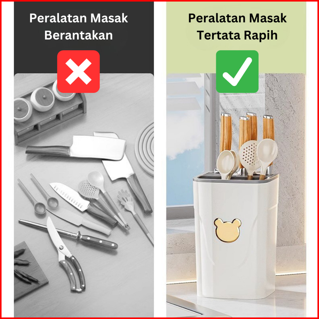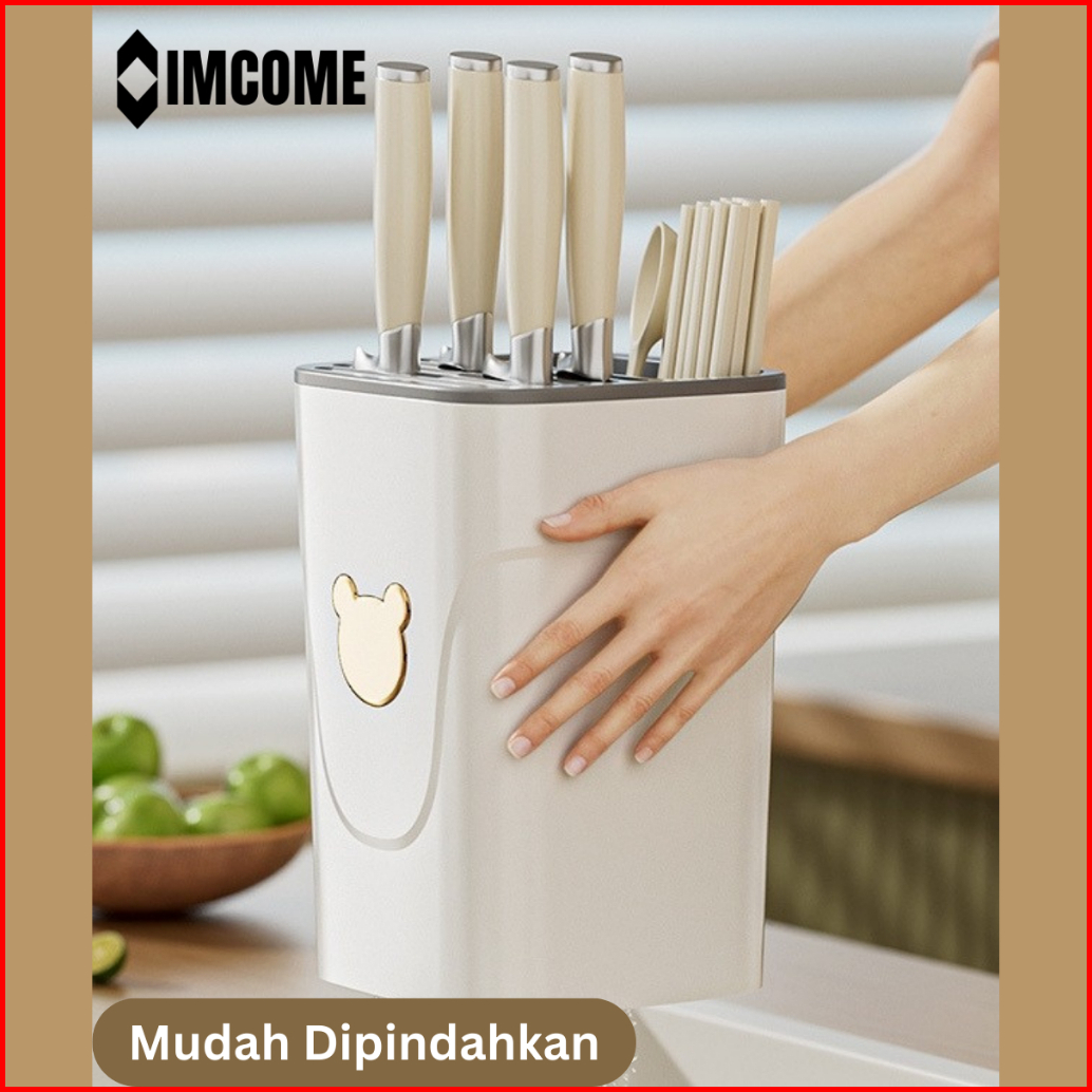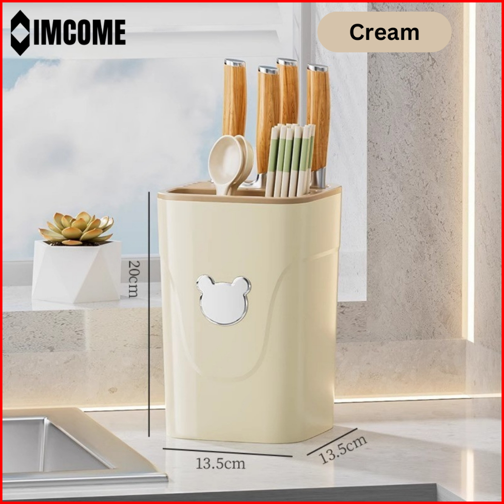Imcome Tempat Sendok Garpu Pisau Sumpit Estetik Rak Wadah Peralatan Dapur Penyimpanan Alat Makan Putar Dengan Tirisan Ti