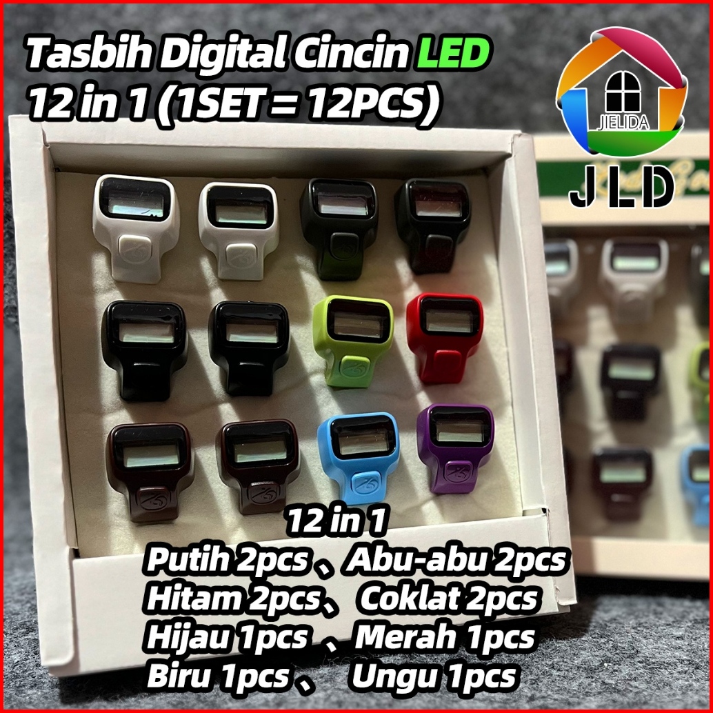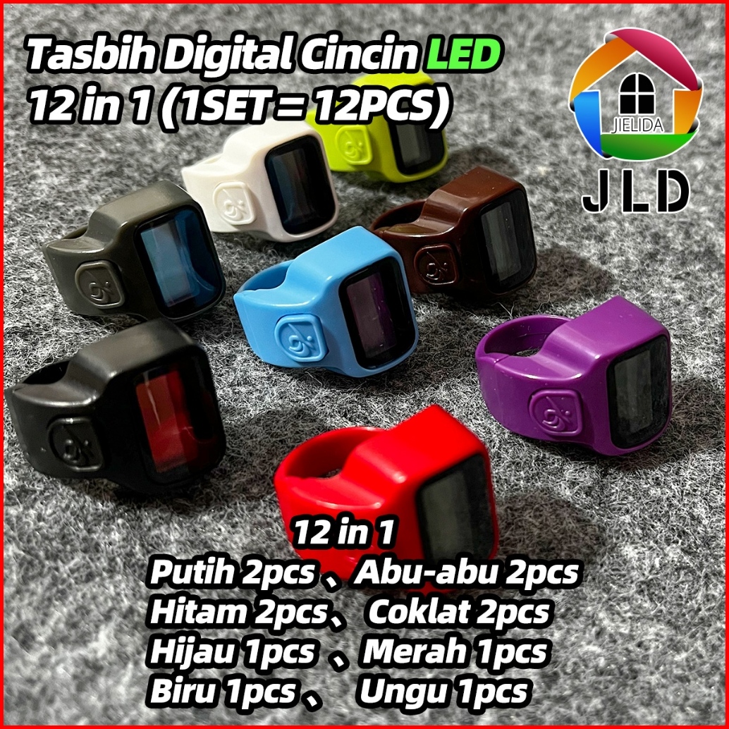 Jielida 12 In 11set 12pcskeluarga Cincin Tasbih Digital Led Mini Alat Penghitung Dzikir Alat Hitung Digital Tally Counte
