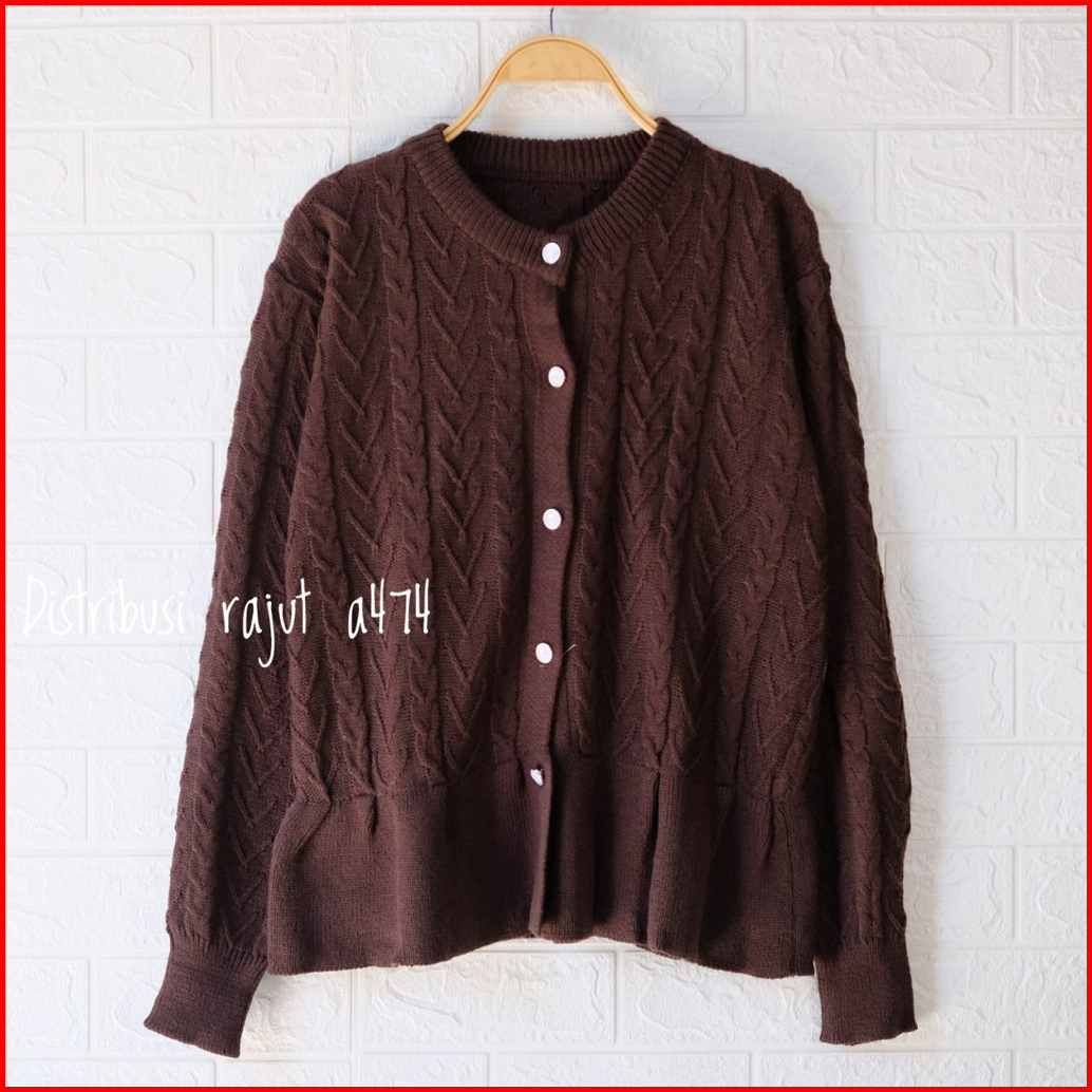 Mizuki Cardigan Rajut Rampel Cable Kancing Tebal Wanita Korean Stayle