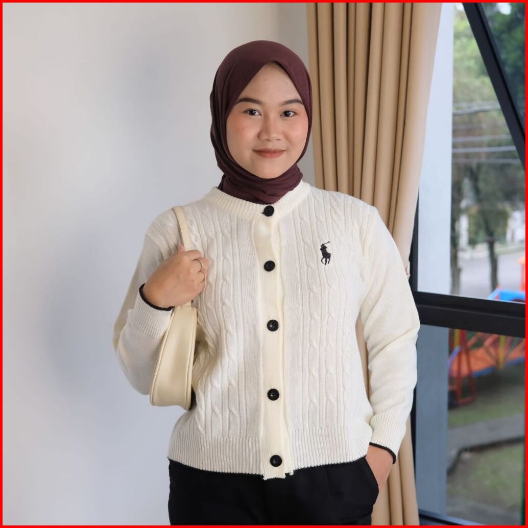 Marwah Horse Cardigan Rajut Kancing Motif Cable Bordir Horse Wanita Premium