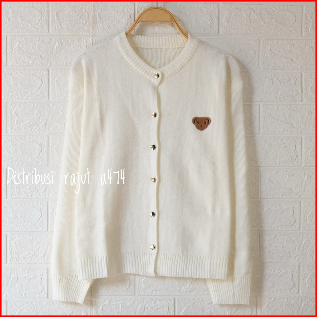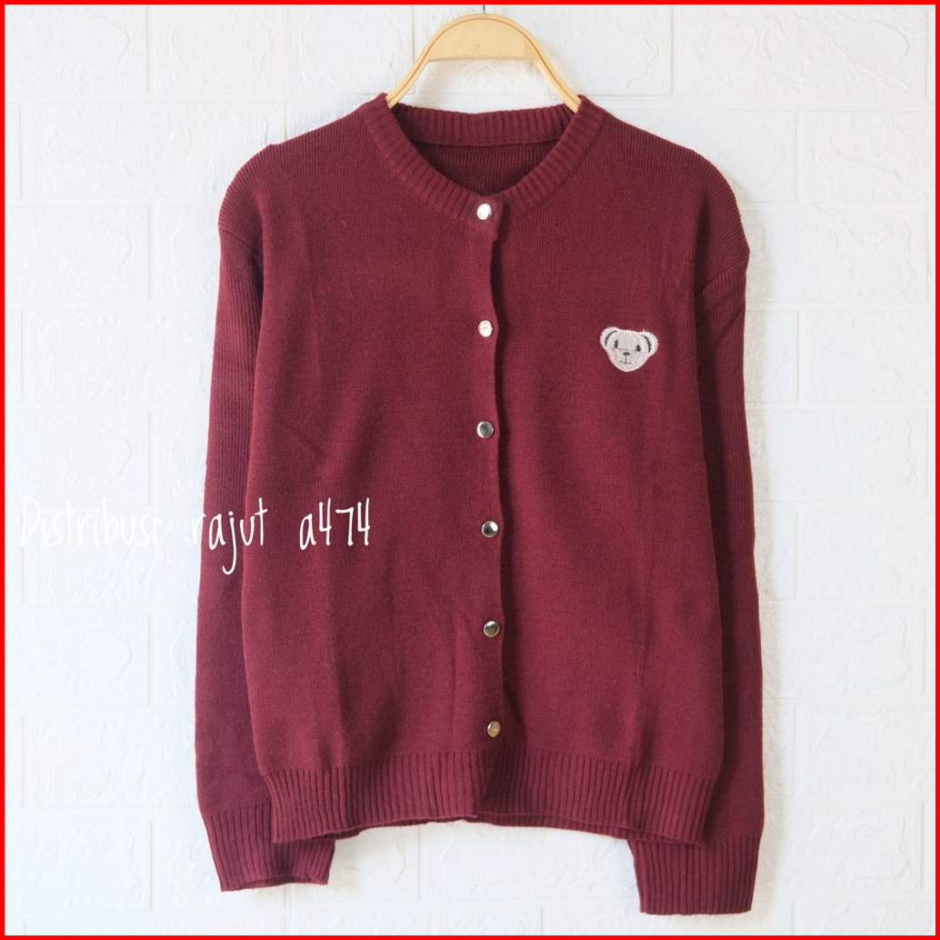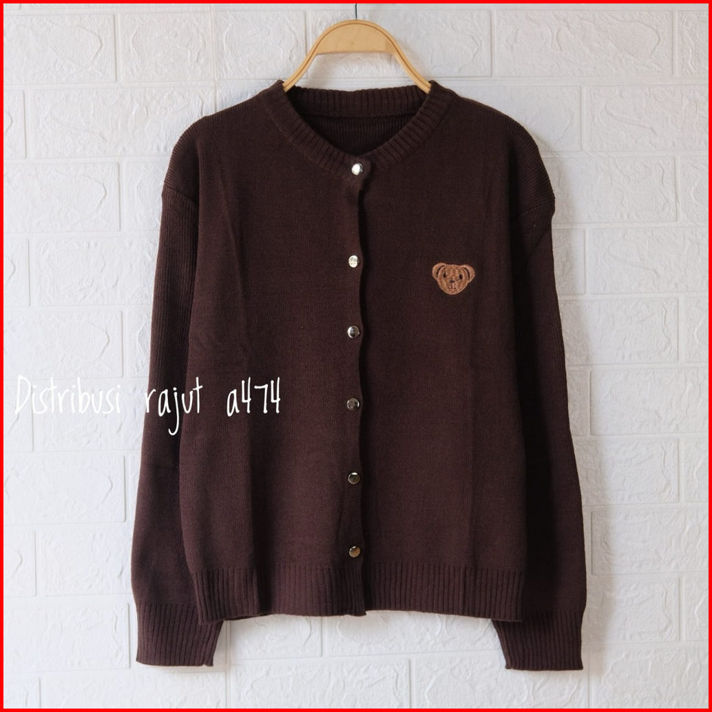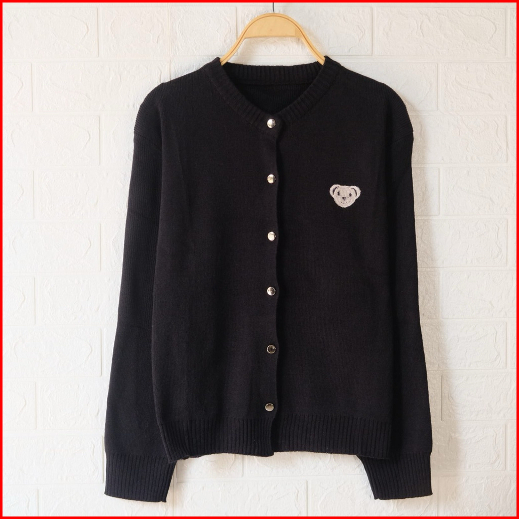 Terra Cardigan Rajut Kancing Polos Motif Bordir Kepala Panda Wanita Koreaan