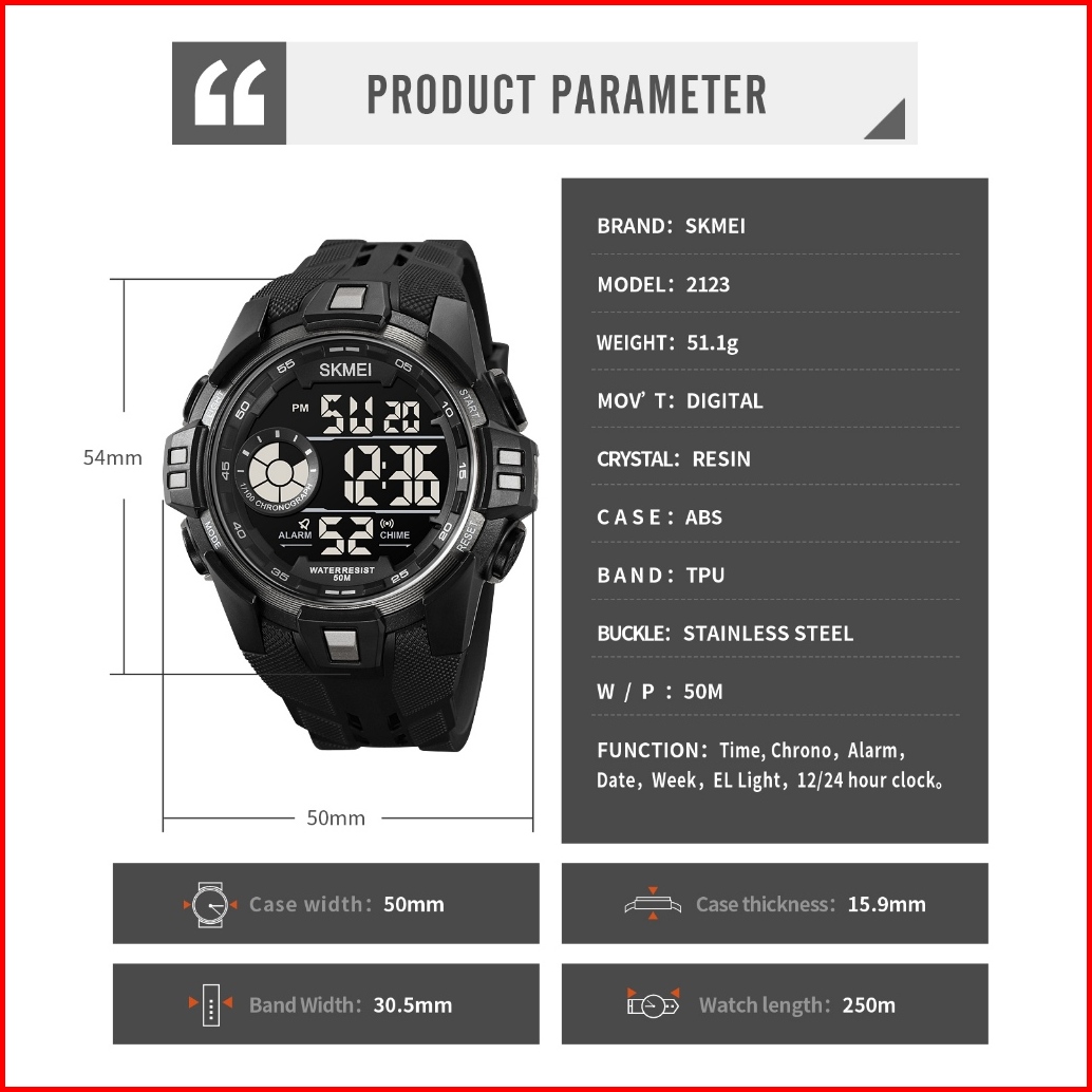Skmei 2123 Original Jam Tangan Digital Pria Strap Rubber Karet Jam Tangan Tahan Air