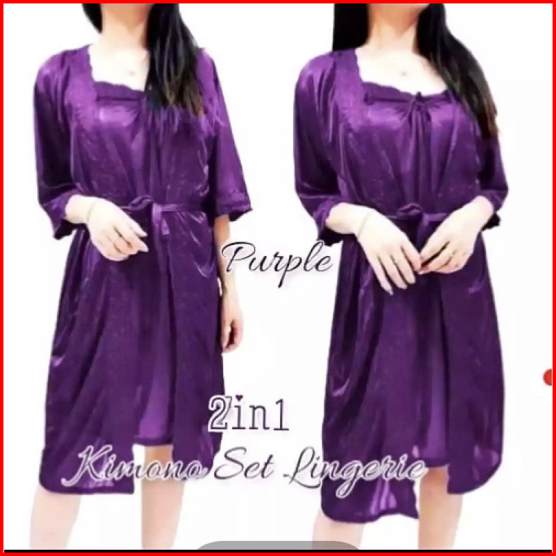 Vwcollection14 - Baju Tidur Wanita Kimono Tricot Setelan 2in1 - Ukuran L Jumbo