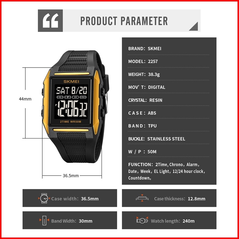 Skmei 2257 Original Jam Tangan Digital Strap Rubber Karet Jam Tangan Tahan Air
