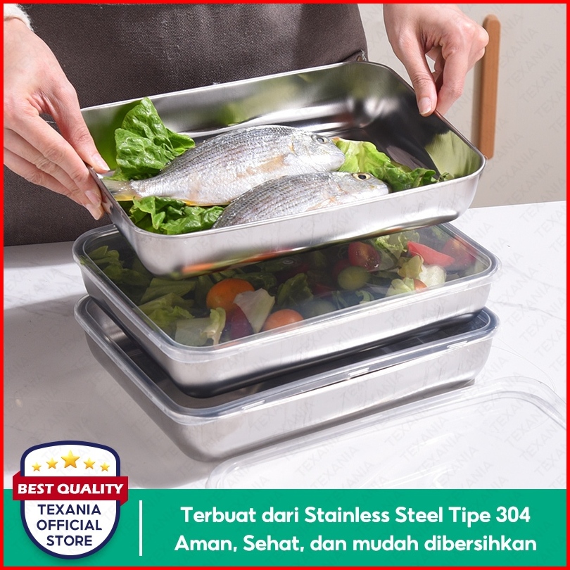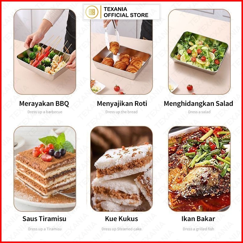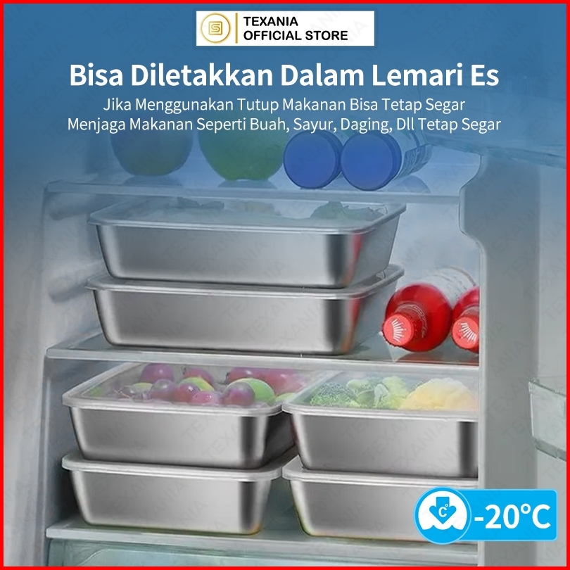 Texania Food Box Isi 6pcs Tempat Wadah Makanan Wadah Sayuran Stainless Multifungsi Bisa Untuk Oven Dan Microwave Free Tu