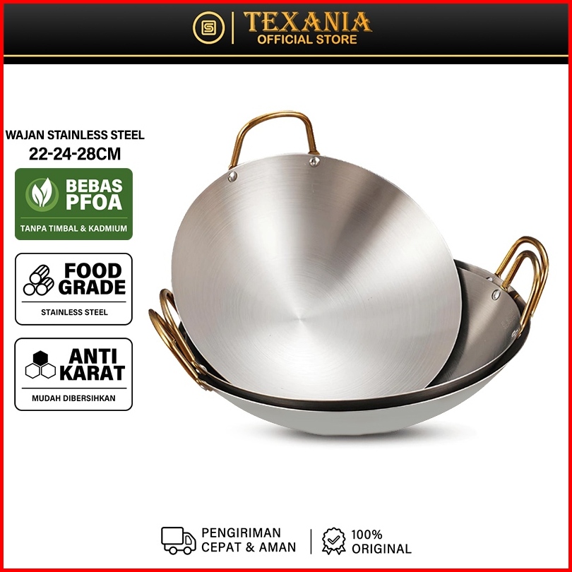 Texania Wajan Stainless Wajan Set 22 24 28cm Premium Dengan Pegangan Kuali Besar Katel Anti Lengket