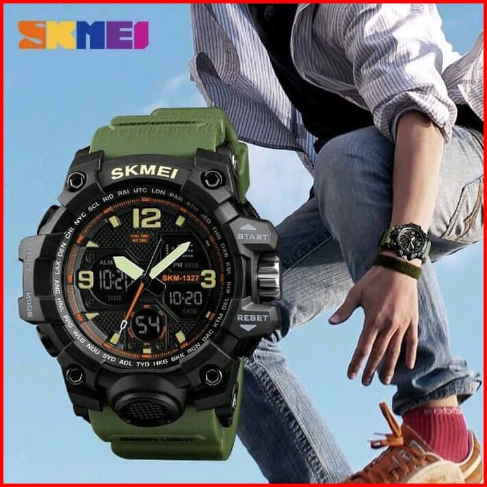 Skmei 1327 Original Jam Tangan Pria Dual Time Rubber Tahan Air
