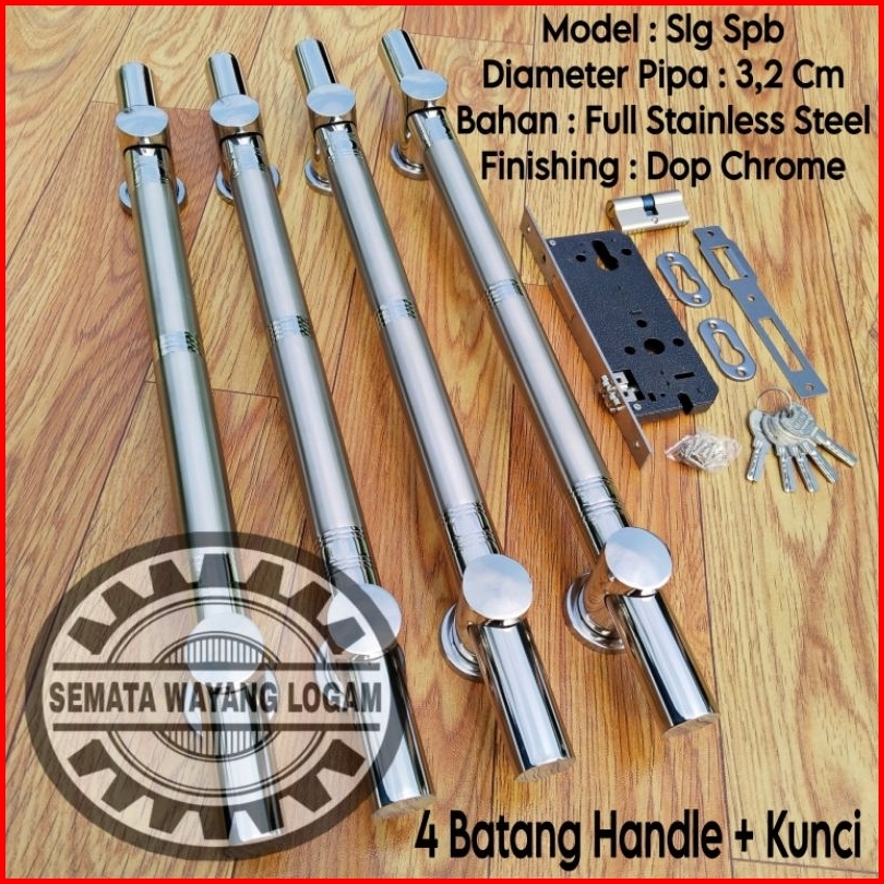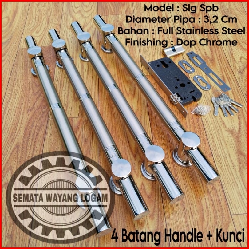 4 Pcs Handle Pintu Rumah Stainless Steel Set Kunci 60cm 45cm Gagang Tarikan Pintu Kupu Tarung Minimalis