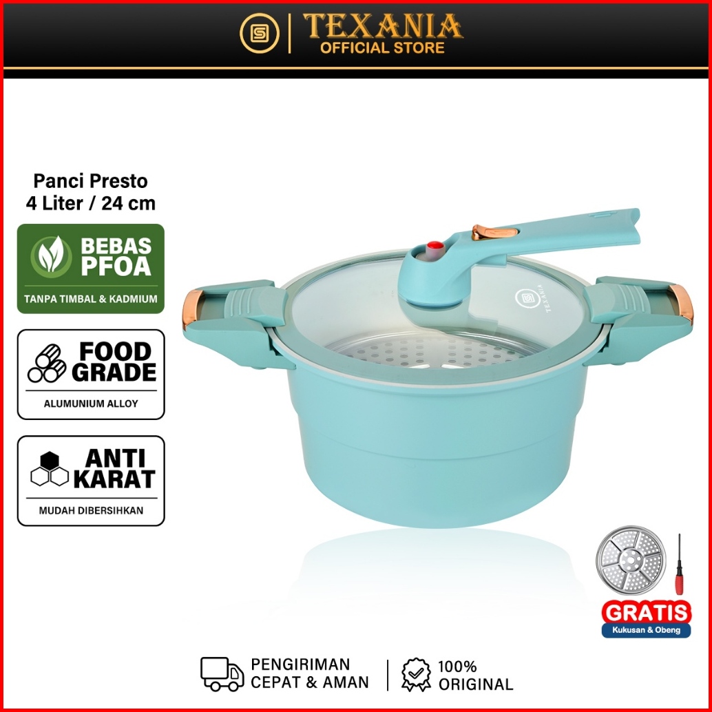 Texania Panci Presto 4l 24cm Multifungsi Kukus Bahan Alumunium Anti Lengket Free Obeng Dan Kukusan