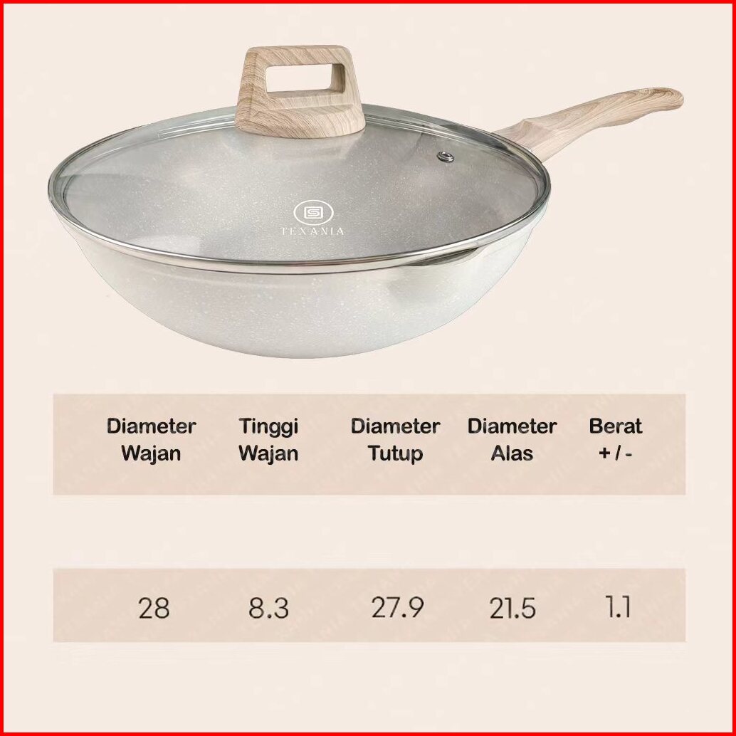 Texania Panci Wajan Penggorengan Anti Lengket Dengan Tutup 24 28cm White Granite Bahan Alumunium Double Bottom Diameter