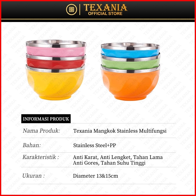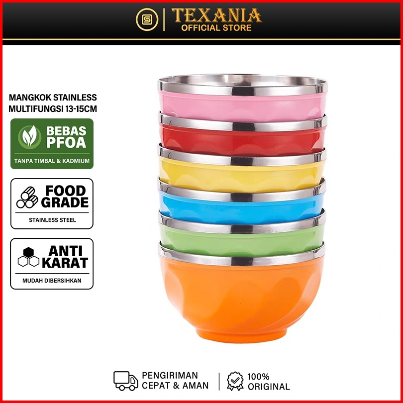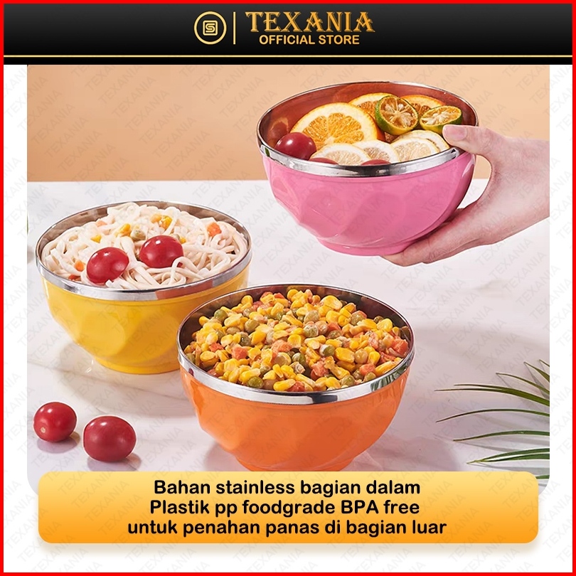 Texania Mangkok Warna Random Bagian Dalam Stainless Steel Anti Karat Foodgrade Bagian Luar Plastik Pp Tahan Panas 13cm 4